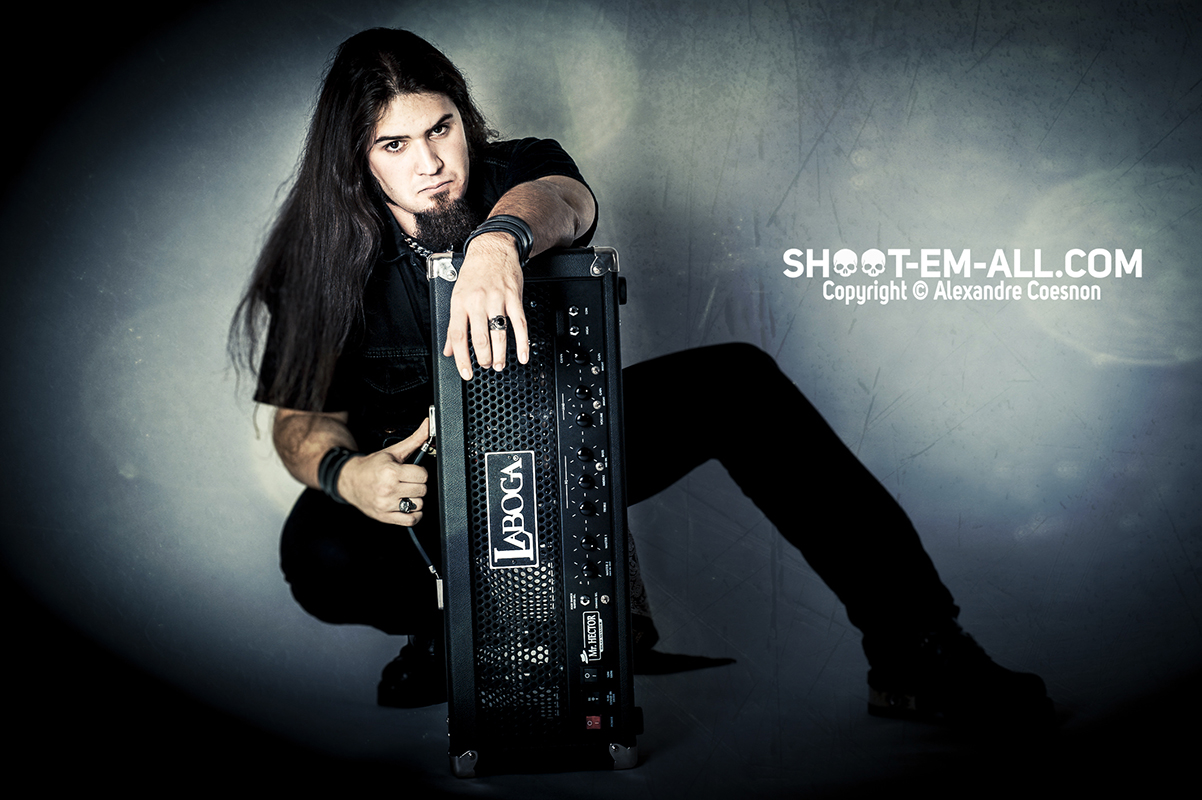 Shooting avec Chris Snaeder, chanteur et guitariste du groupe BACKDAWN (shooting avec le groupe ici), lors de son endorsement par LABOGA pour les têtes d’ampli.