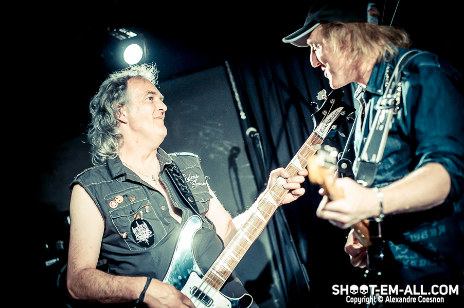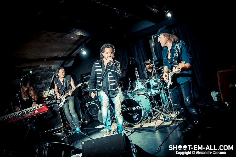 1h15 de concert avec un setlist qui booste du coup, et comme vous pourrez le voir, avec un petit nouveau dans la formation au clavier : Van Eymery, pour son 3ème ou 4ème concert avec le groupe. Et bien ça change tout avec un clavier, les morceaux sont fidèles aux vraies, et Denis à la guitare se voit donc allégé de quelques solos, ce qui permet du coup de beaux duels entre les 2 !
