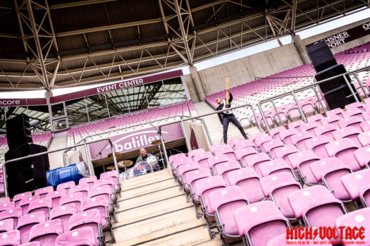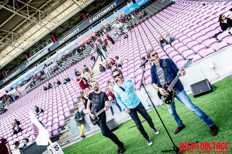C’est par un beau dimanche ensoleillé que la veille de mes 40 ans, le Servette Rugby Club recevrait Bron en 8ème de finale de la ligue Aura au Stade de Genève, et High Voltage a été invité à jouer quelques morceaux durant l’échauffement des joueurs, lors de l’entrée des joueurs pour le match, ainsi que durant la mi-temps.