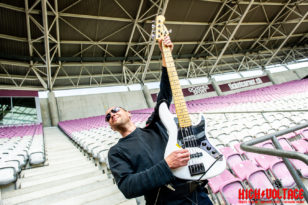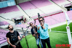 C’était bien dommage de voir un si grand stade vide… et pour des raisons logistiques et techniques le groupe était scindé en 2 avec François, JC et Philippe sur le terrain face aux spectateurs, Lio et Guillaume plus haut dans les gradins à droite.